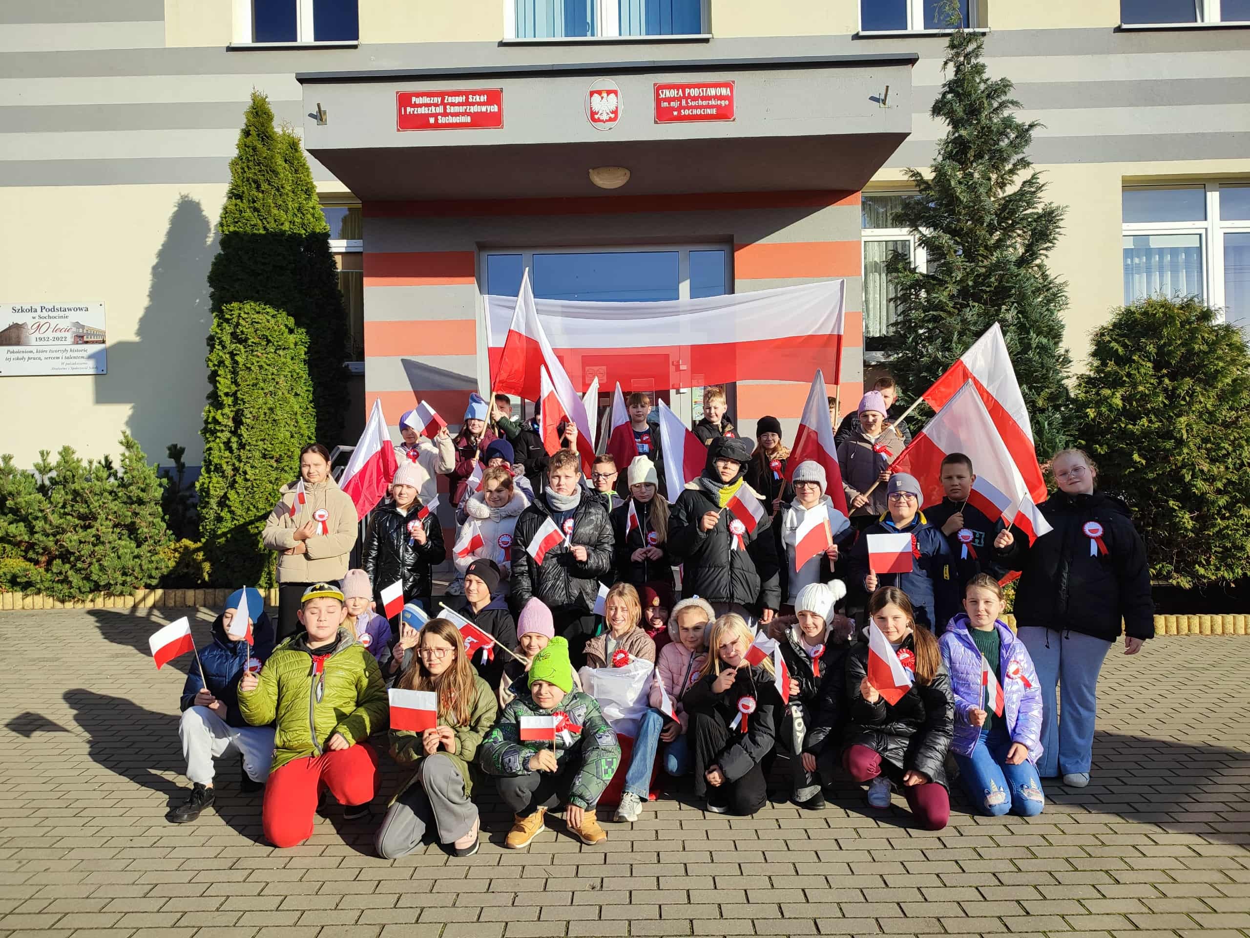 Klasy czwarte 13 listopada 2025 r. udowodniły, że pamięć o Niepodległej jest w sercach najmłodszego pokolenia. Przed szkołą dumnie rozpoczęli „Marsz dla Niepodległej”, zamieniając ulice Sochocina w żywy, biało-czerwony pochód!